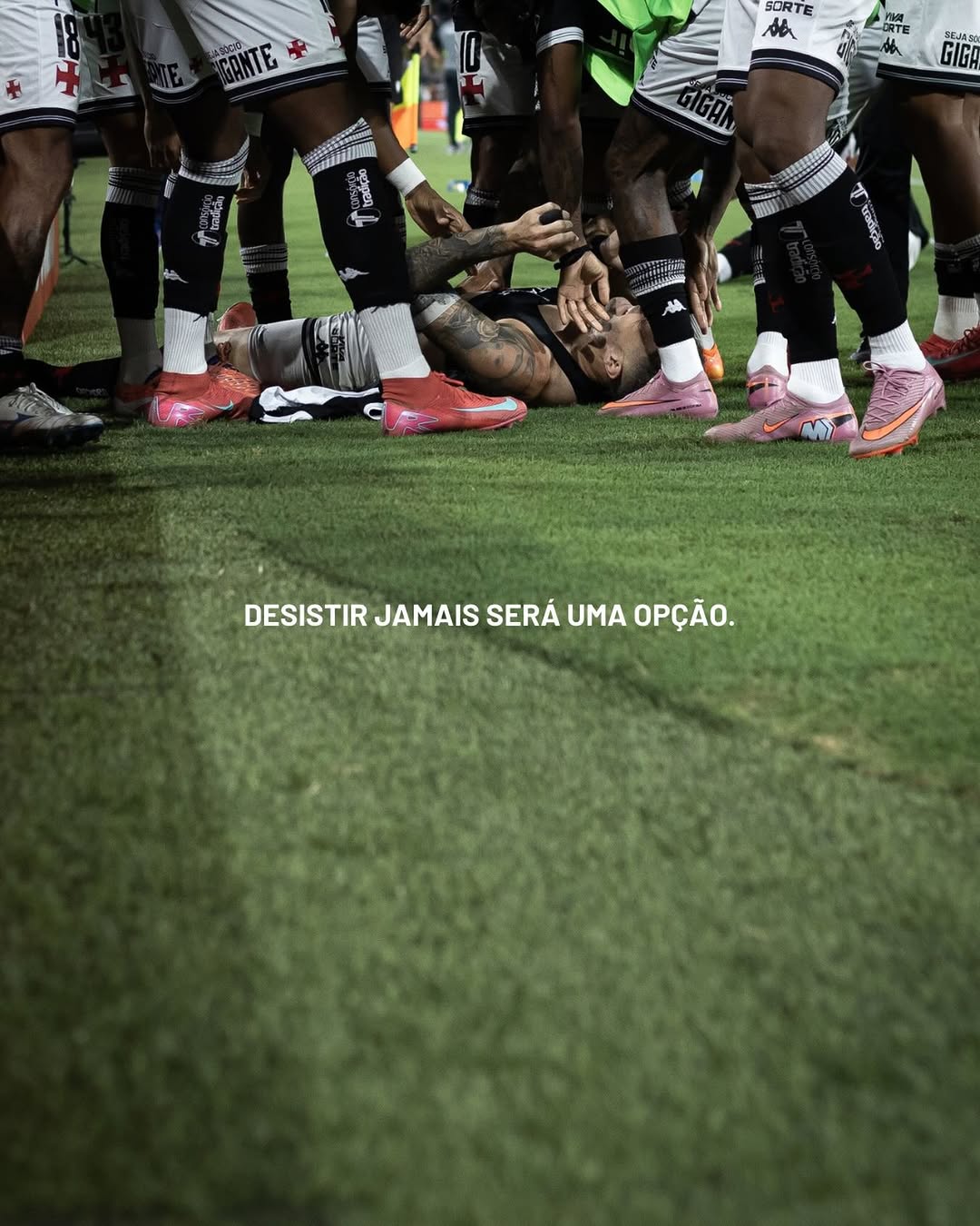 Vasco posta foto da comemoração do gol de Vegetti: 'Desistir jamais será uma opção'