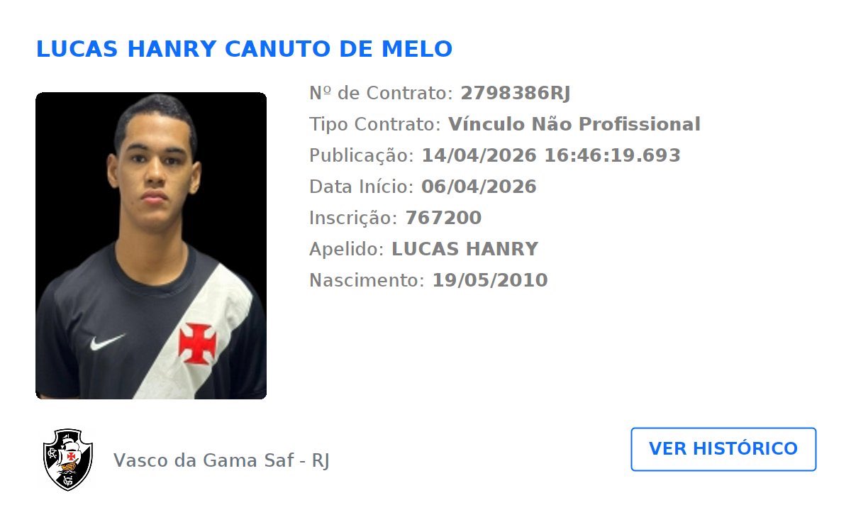 Com apenas 16 anos, o meio-campista era tratado como uma das principais promessas da base do Sport Recife, passou pela base do Palmeiras, mas acabou acertando com o Vasco, e já está inscrito nas competições da categoria pelo Cruzmaltino.